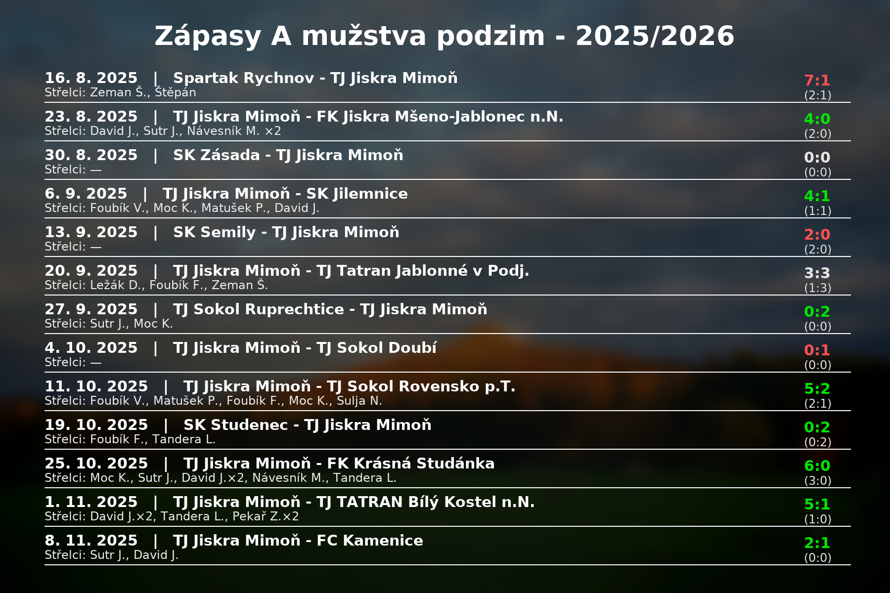 Velké díky patří všem organizátorům, hráčům, fanouškům i návštěvníkům. Byly to dva dny, na které budeme dlouho vzpomínat – přesně takové, jaké si 90 let fotbalu v Mimoni zaslouží!