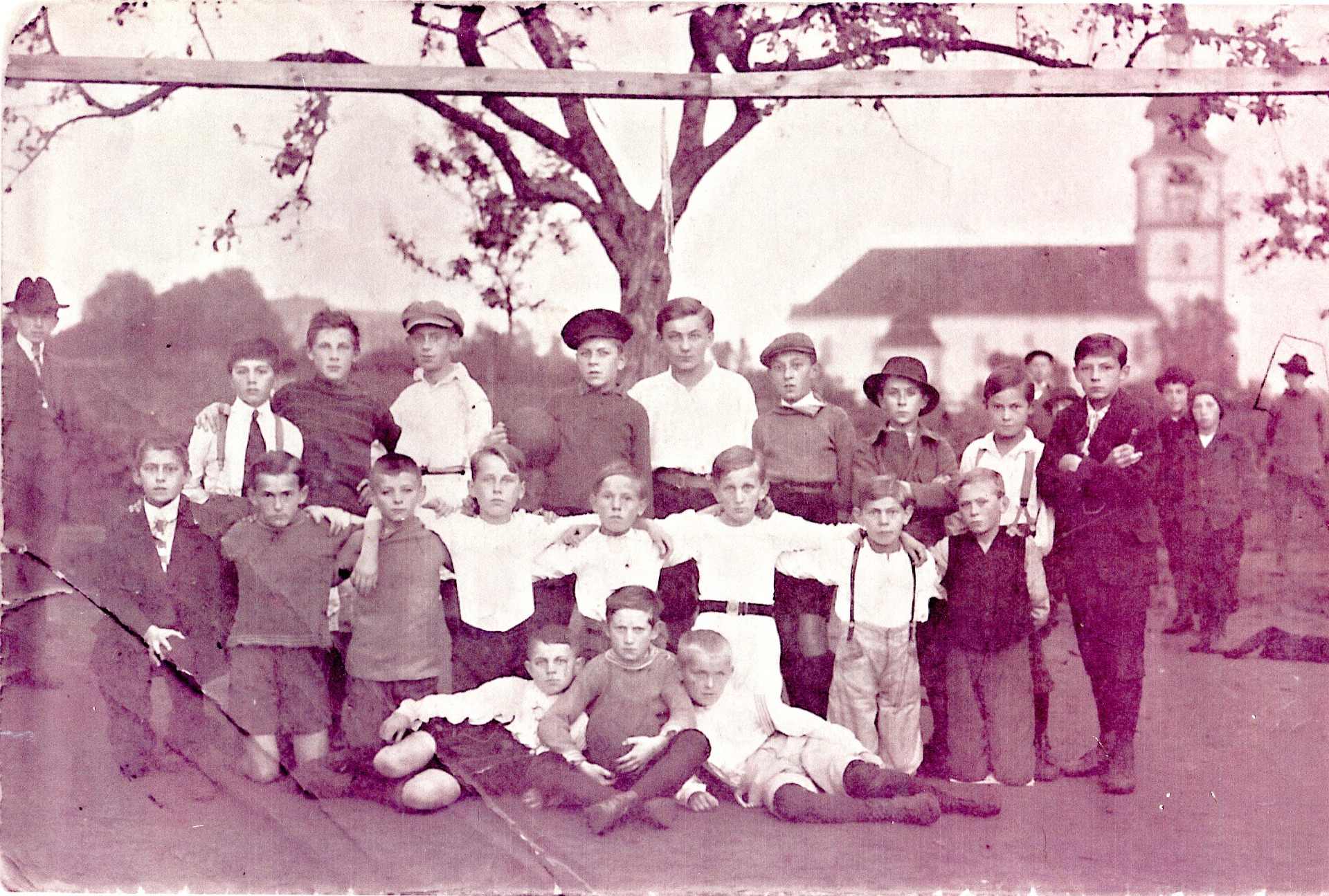 "Jedná se o české žactvo, mladší a starší. Místo je v oblasti dnes již bývalých kasáren, tehdy poblíž tehdejších české kolonie zahrádkářů (přibližně kolem roku 1935)" doplnil nám k fotografii pan Hons.